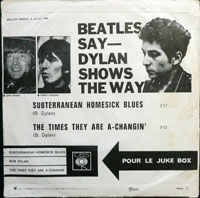 In February 1964, the Beatles appeared on the Ed Sullivan Show. Over the next year and a half, the folk scene tried to come to terms with a new competitor: rock 'n' roll that was not just fun teenage dance music, but appealed to intelligent, socially committed college students as well. It wasn't just rock: there were also the Persuasions and Sam Cooke, Chuck Berry writing better than ever, Johnny Rivers getting hits with Pete Seeger and Leadbelly songs--and Dylan, who was now writing about a pied piper called the "Tambourine Man" who would take him "disappearing through the smoke rings of my mind." In Britain, young rockers covered his songs and imitated his style, and the Beatles and Rolling Stones named him as an influence; in the US, Johnny Cash hailed him from the stage of the Newport Folk Festival as "the best songwriter of the age, since Pete Seeger." His songs were getting longer, more complicated, and harder for his old fans to understand. By the spring of 1965 his new album included some tracks with an electric rock band and he had a hot single on the radio. Meanwhile, the folk world was changing as well: the month before that summer's Newport festival, the New York Folk Festival included a blues evening featuring Muddy Waters' electric Chicago band and Chuck Berry.