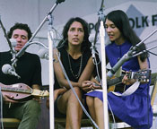 Dylan and the wave of new songwriters that had first attracted attention with lyrics about social issues were changing their styles and themes, exploring their personal lives, their imaginations, and the possibility of getting pop hits. Richard and Mimi Fariña had recorded with an electric band, and although they played at Newport with acoustic backing, they flirted with rock 'n' roll rhythms and got the crowd up and dancing in the rain. The festival organizers were still trying to focus attention on rural traditions, but many of the young fans wanted something different, a music that spoke directly to their tastes and interests--though other young fans were horrified at the thought that their annual gathering of the folk faithful was turning into a pop music market, full of reporters and callow teenyboppers pursuing radio hitmakers for autographs.
